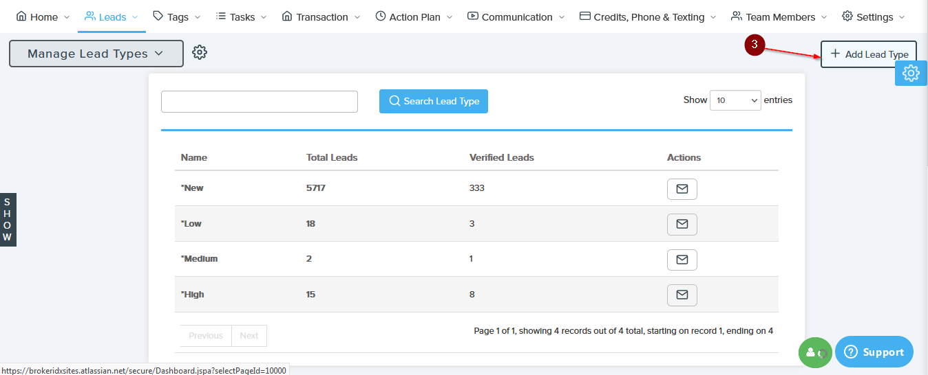 3. Then click on the "Add Lead Type" button located in the right-hand corner of the screen to create a new lead type.