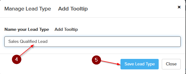 4. On the window that appears, enter the name of the new Lead Type in the input field provided.