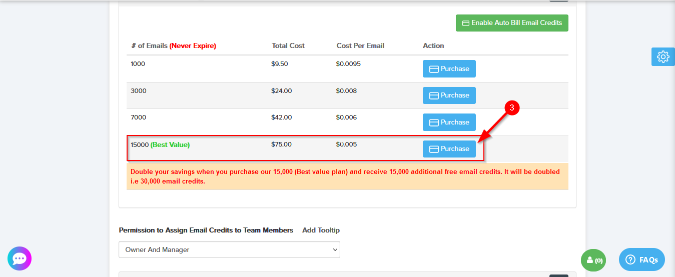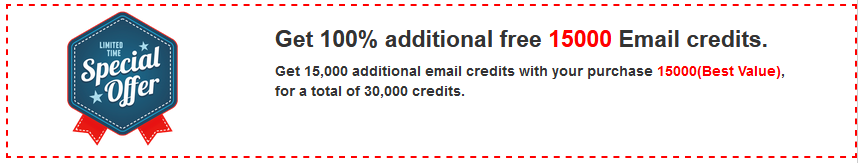 3. Take advantage of the 100% discount offer by purchasing the 15000 (Best Value) plan and click on the "Purchase" button, which will be doubled to a total of 30,000 emails at no additional cost!