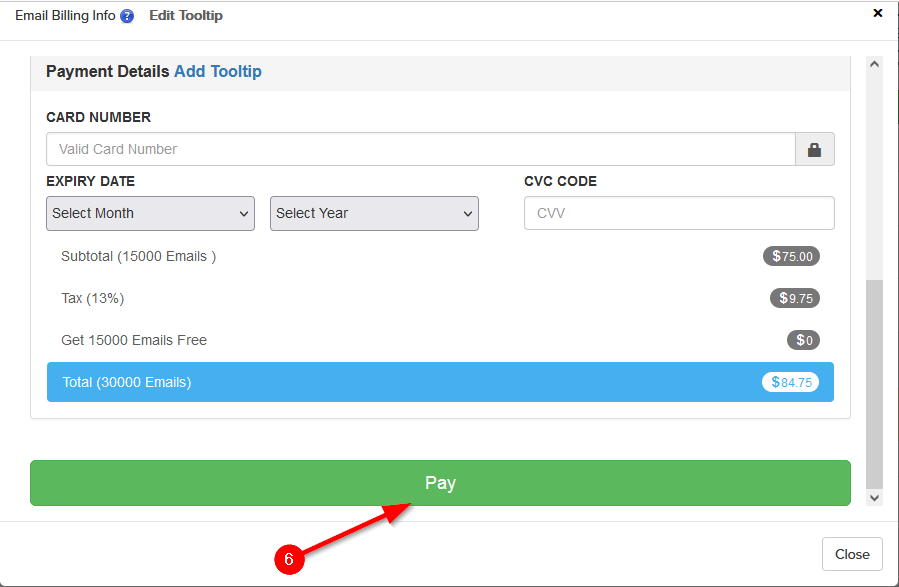 6. Once you have made your selection, scroll down the page and click on the "Pay" button to finalize the purchase process.