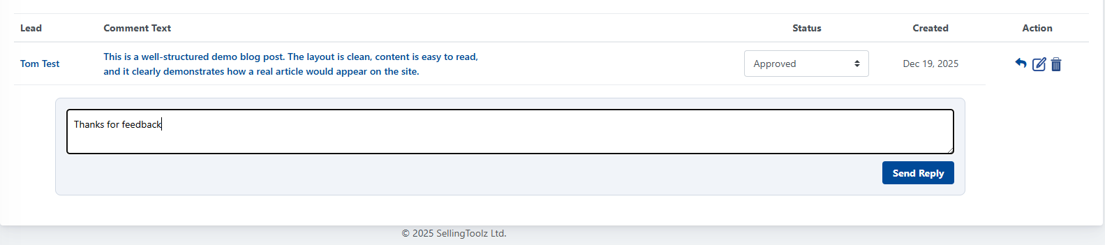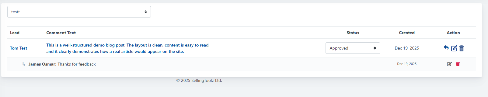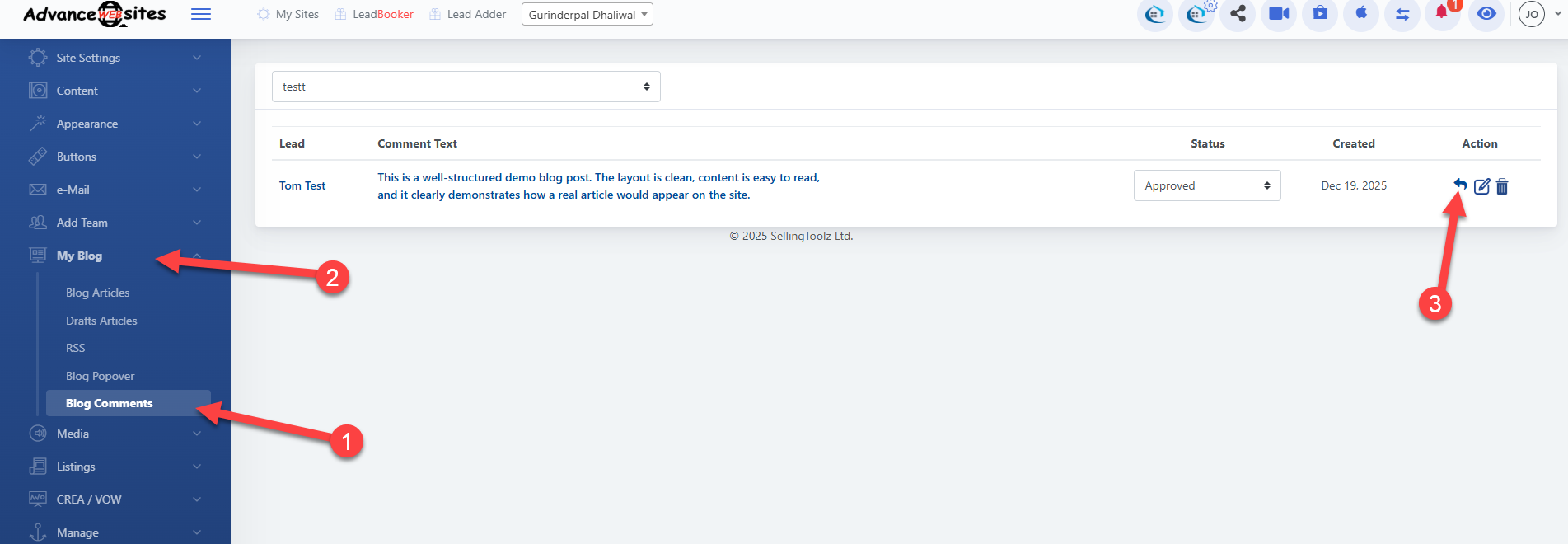 1. Navigate to My Blog → Blog Comments from the left-side menu.
